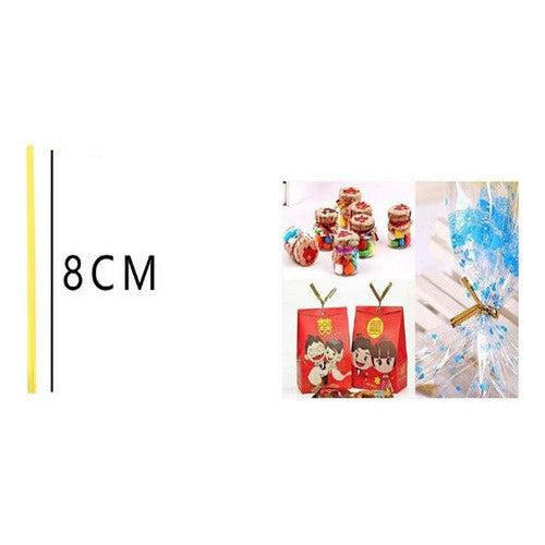 Ideales para cerrar un envoltorio plástico o trabajos escolares. Alambre suave de doblar, recubierto en papel plástico metalizado para dar un acabado elegante y decorativo.