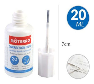 Perfecto para corregir errores de escritura y tinta. Secado rápido y fácil de aplicar.