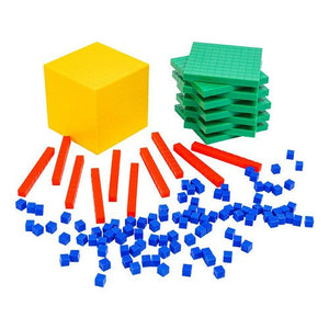 Base 10 de material plástico resistente, compuesto por 121 piezas. Este material permite a los niños y niñas comprender conceptos básicos de matemáticas y relacionar ideas abstractas acerca de los números, facilitándole la manera de pensar y razonar.