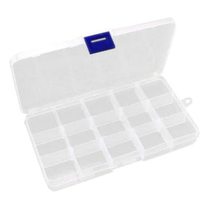 Caja Organizadora plástica de 15 espacios para mostacillas planchables Hama u otros objetos.