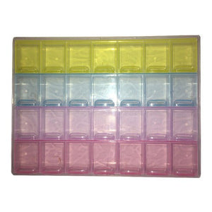 Caja Organizadora plástica de 28 espacios para cristales, mostacillas planchables Hama u otros objetos.