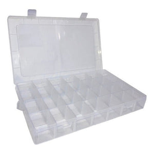 Caja Organizadora plástica de 28 espacios grande para mostacillas planchables Hama u otros objetos.