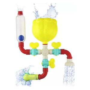 Juego recorrido de agua compuesto por 11 piezas plásticas armables de medidas entre 6 y 18 cm, el recorrido armado mide 28 x 30 cm.