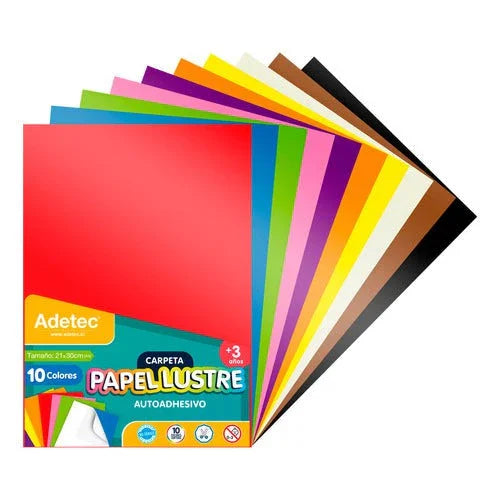 Papel Lustre 10 Colores Autoadhesivo A4
