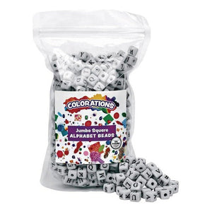 Set compuesto por 260 dados con letras para enhebrar, material plástico resistente, con medidas 1,2 cm, con un agujero de 0,5 cm.