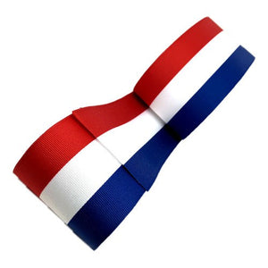 Cinta Tricolor Grande de 9 cm de ancho con los colores de la bandera de Chile. Útil para decoración de Fiestas Patrias, bandas, escarapelas, colgantes, manualidades, cinturones huasos, etc.
