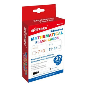 Contiene 27 piezas de 11.5 x 7.5 cm aprox. + 1 plumón de pizarra con borrador en la tapa.