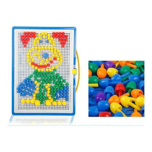 Juguete educativo diseñado para potenciar la creatividad y la motricidad fina. Piezas de plástico con forma de Seta que se encajan en un base plástica. Las setas son de distintos tamaños y colores