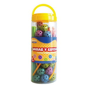 Une las esferas con los diferentes tipos de varas para conectar y crear diferentes formas y objetos. Son ideales para desarrollar la motricidad fina