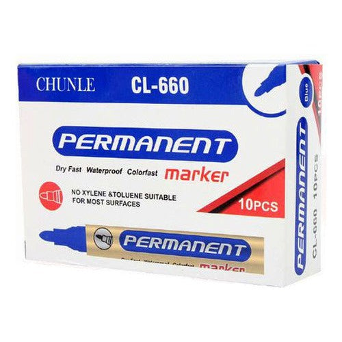 Pack 10 Marcadores Plumones Permanente Azul Punta Redonda