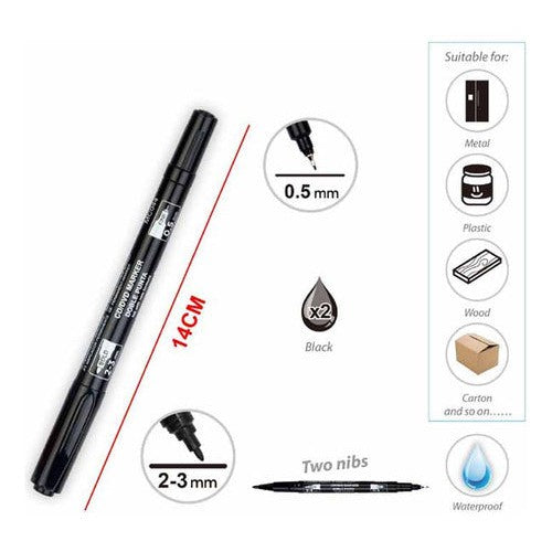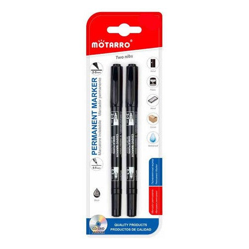 Pack 2 Plumones Permanentes Doble Punta Fina Negro