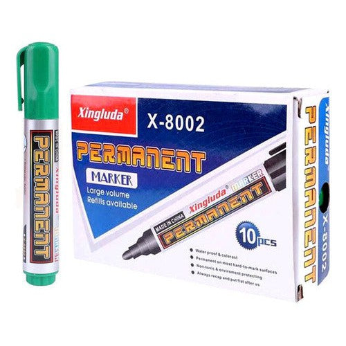 Pack 10 Marcadores Plumones Permanente Verde Punta Redonda