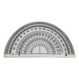 Para utilizarlo, simplemente coloca el transportador sobre el papel y alinea la base con la línea que deseas medir o trazar, luego, desliza el brazo móvil para ajustar el ángulo necesario y marca el resultado con precisión. Con esta práctica herramienta, resolver problemas geométricos y medir ángulos será mucho más sencillo.