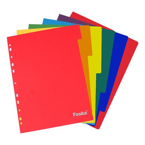 Set de 6 separadores plásticos A4, de 6 diferentes colores, medidas 22,5 x 29,5.