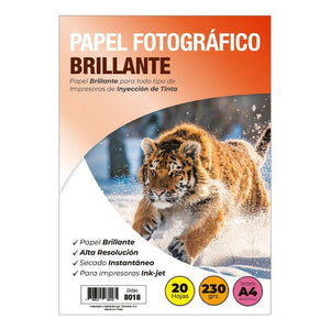 Papel Fotográfico Brillante A4. 230 Gr 20hj