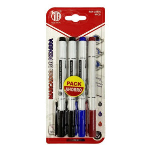 Set de 4 plumones de pizarra 2 Negros, 1 Rojo y 1 Azul: