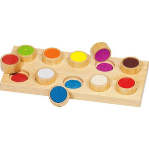 Juego memorice en material madera natural. Consta de 10 cilindros con diferentes texturas encajables. Fomenta el desarrollo de habilidades táctiles y sensoriales, mejora las habilidades motoras finas y el reconocimiento de texturas.