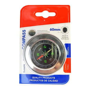 Brújula Escolar Metálica 60mmIdeal para complementar con el ramo de historia y geografía. Carcasa metálica de acero inoxidable.Coloque la brújula horizontalmente, espere a que la brújula se detenga, gire hacia el extremo rojo y alinee con S para saber dónde se encuentra.
