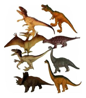 Set de 8 dinosaurios tamaño jumbo, el animal más grande mide aproximadamente 10x12 cm. Material didáctico que fortalece la imaginación y nuevo vocabulario por medio del juego. Fabricado en material plástico resistente, no toxico.