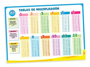 Tabla de multiplicar con medidas 50 x 70 cm, material couche´ de 200 grs termolaminado.