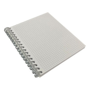 Fabricado con anillado doble de acero. Contiene 100 hojas cuadriculadas de 6x6mm. Tapa blanda de cartón duplex de 220 grs. Papel de 75 gramos.