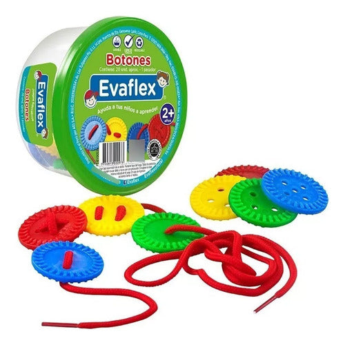 Ideal para desarrollar la motricidad fina y la coordinación óculo-manual. Además sirven para clasificar mediante color y cantidad de orificios.