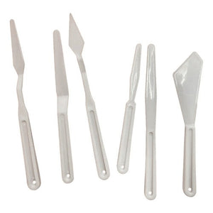 Ideales para trabajos de pintura escolar o recreativos. De plástico resistente de una sola pieza. Set incluye 6 espátulas distintas que se pueden apreciar en la foto de portada.