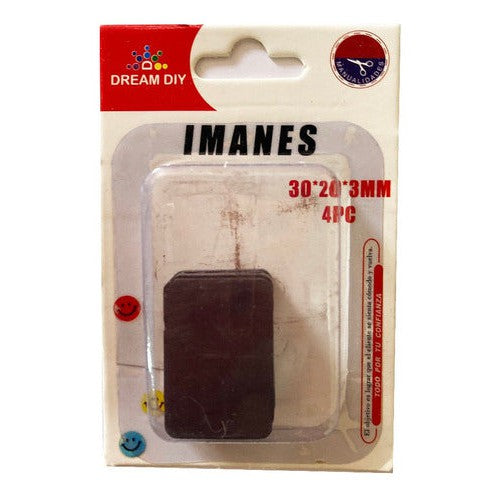 Set de 4 imanes Rectangulares de 3cm x 2cm x 3 mm de grosor. Ideal para manualidades u otros usos. De gran calidad y adherencia a métales.